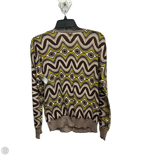 Cardigan Designer By Tory Burch In Brown & Yellow, Size: L