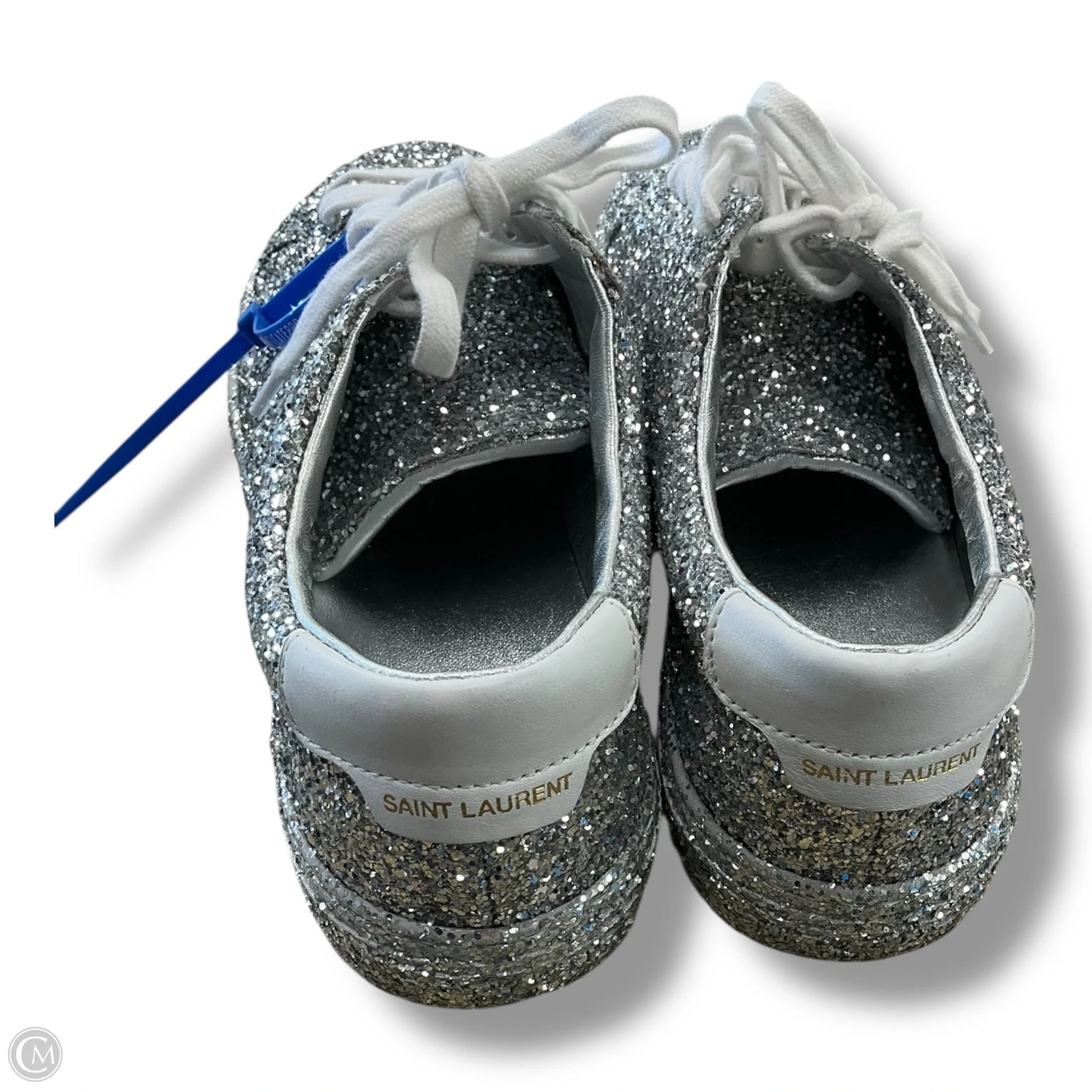 Shoes Luxury Designer By Yves Saint Laurent In Silver, Size: 5.5